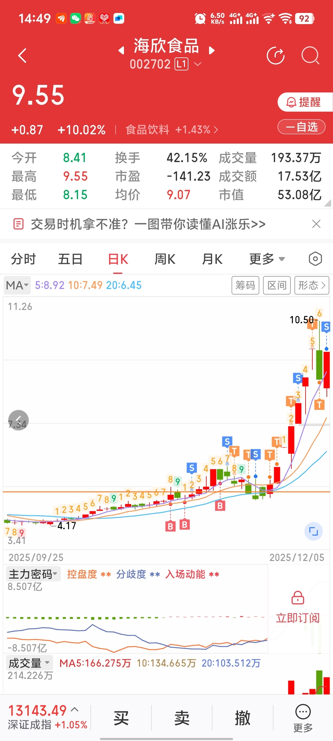$海欣食品(SZ002702)$ 海欣今天全清了,下个交易日一字板不后悔,低开会买一点。
