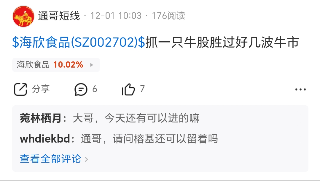 $海欣食品(SZ002702)$ 这句话的含金量还在提升。