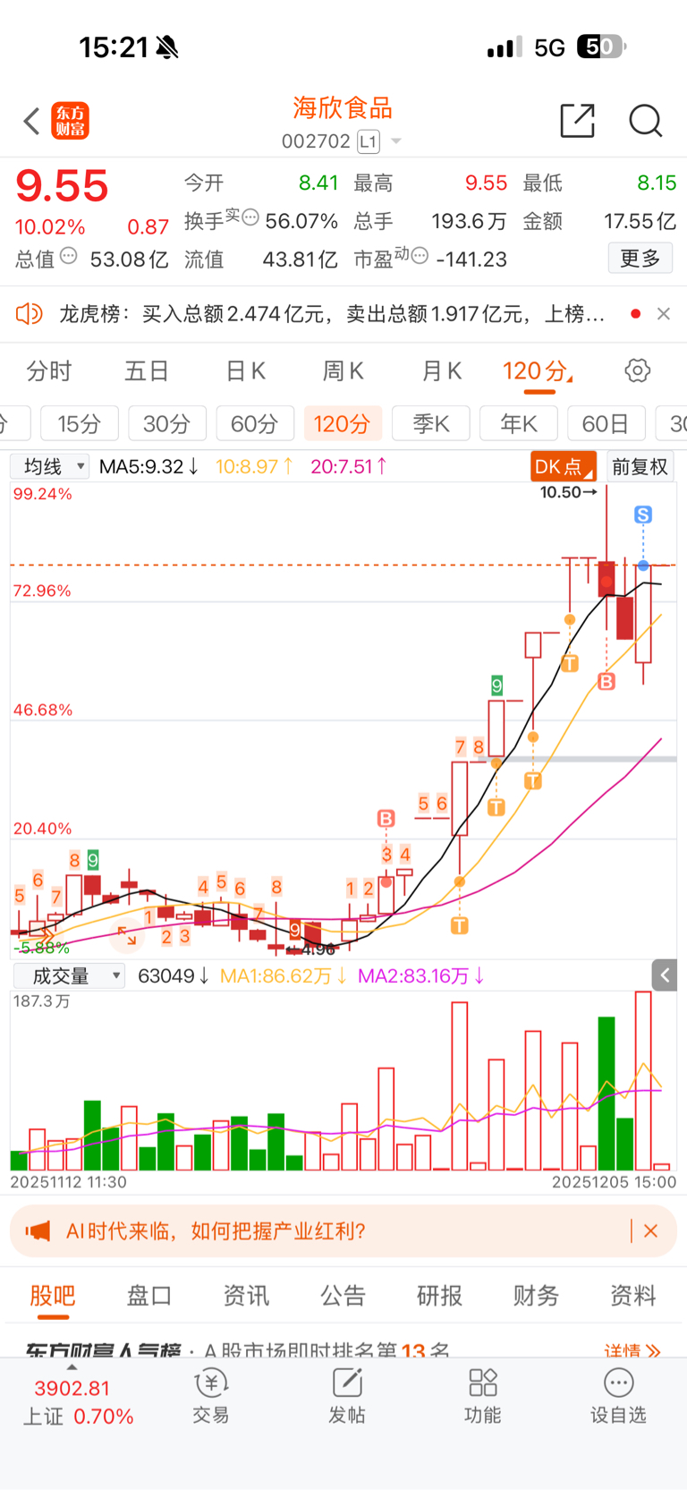 $海欣食品(SZ002702)$ 真的感觉自己走早了,二波是不是已经启动了?礼拜一能低开接回来吗?