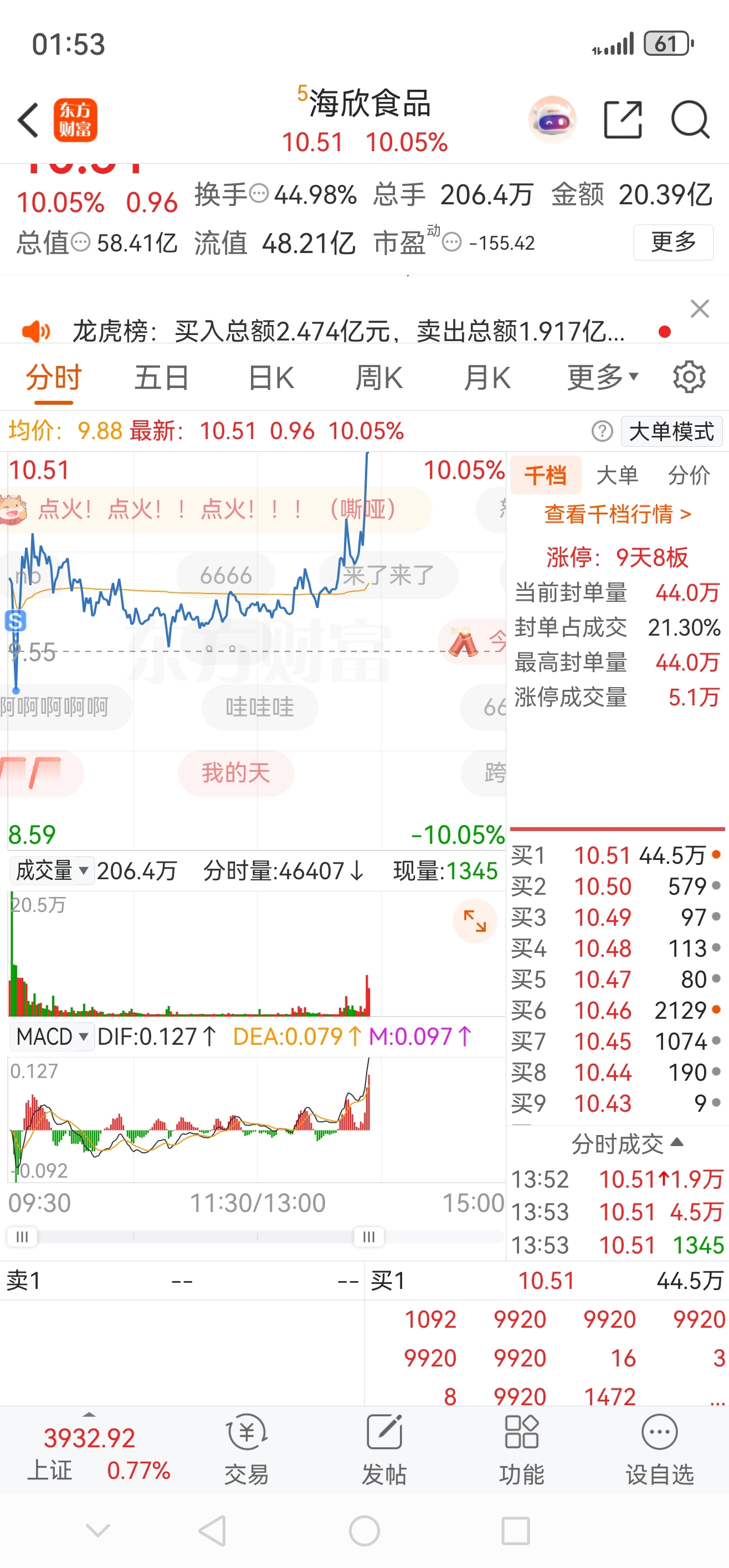 $海欣食品(SZ002702)$ 兄弟们可以夸夸我吗