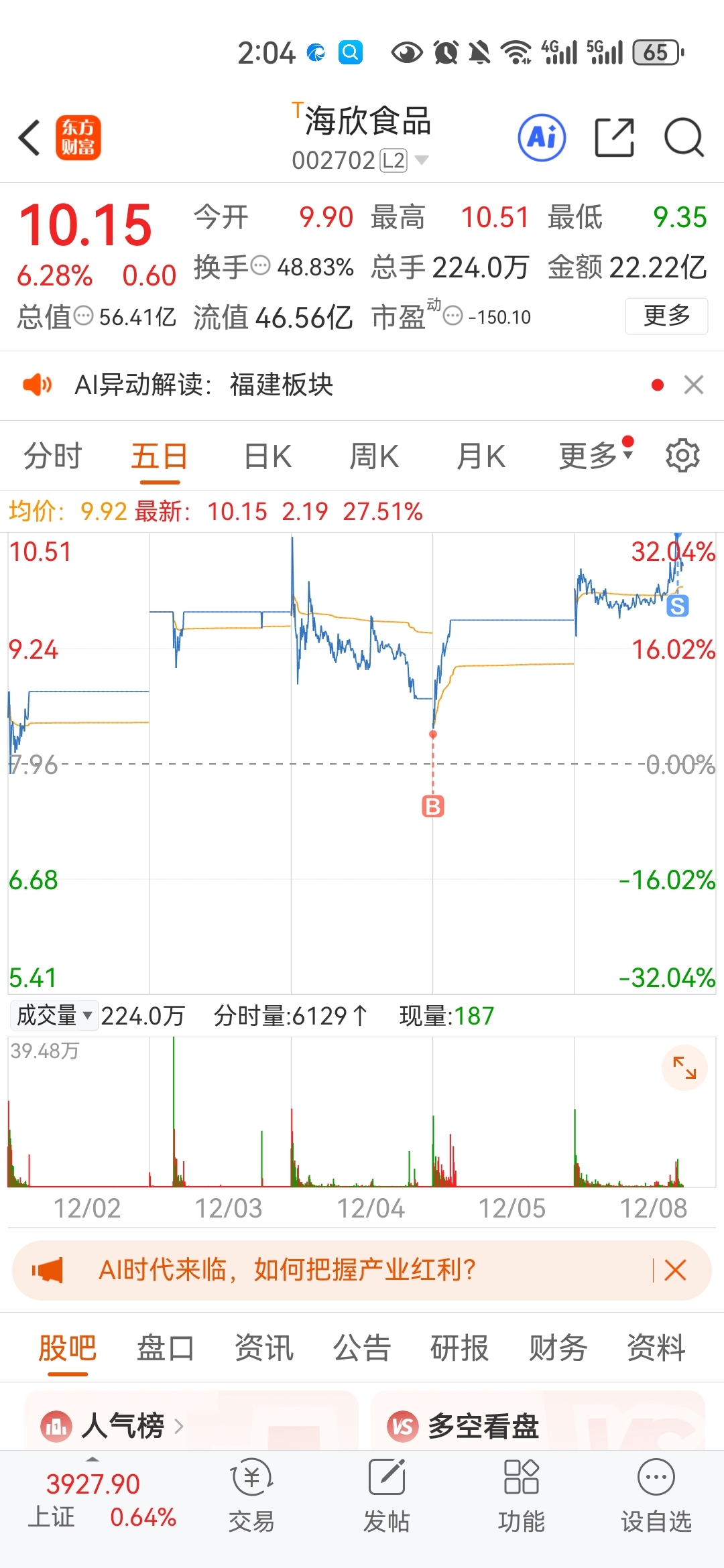 $海欣食品(SZ002702)$ 小盘子,不是龙头,断板必走。