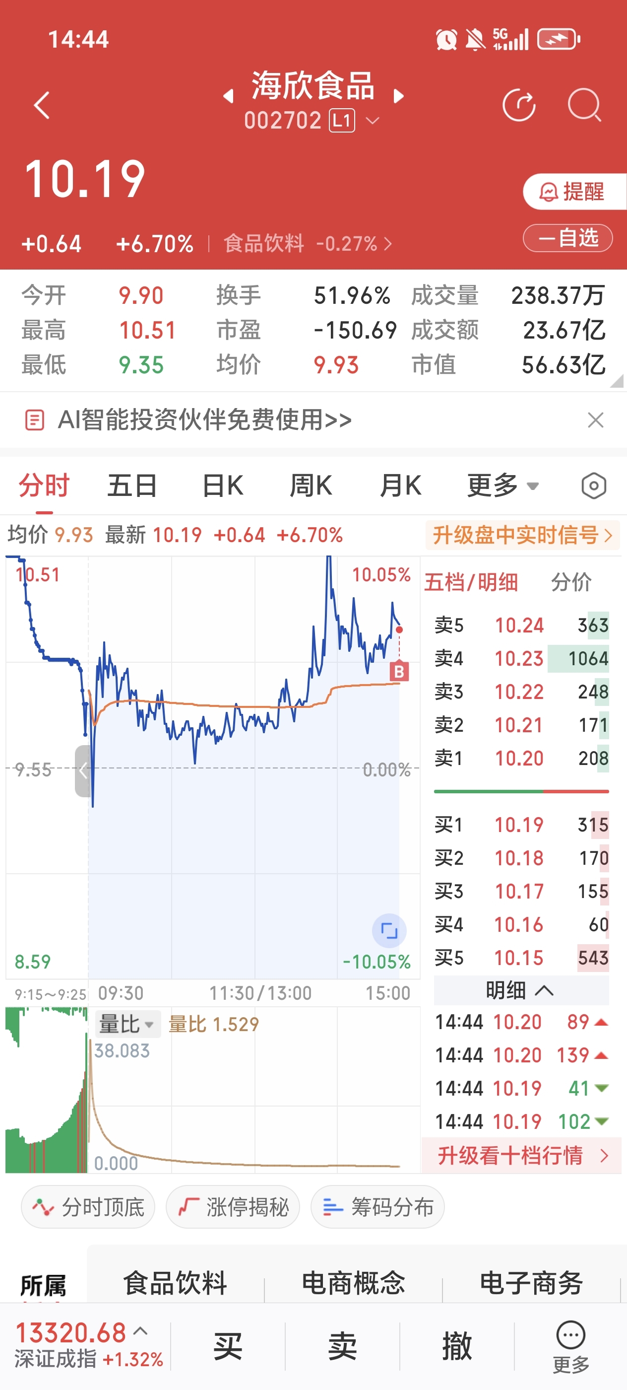 $海欣食品(SZ002702)$ 入手,博明天