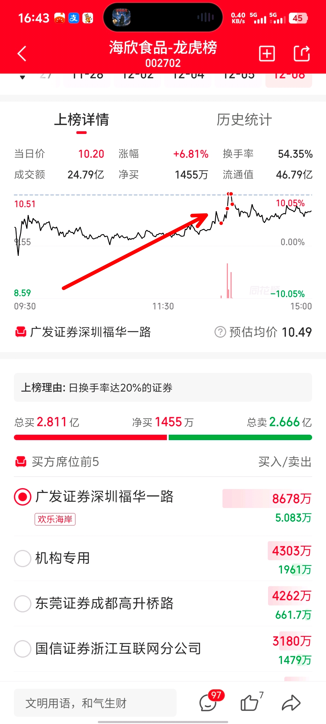$海欣食品(SZ002702)$ 欢乐海岸挂在山顶了,明天应该会红吧,他不会亏本卖吧?今天零轴买了半仓,没敢全仓。