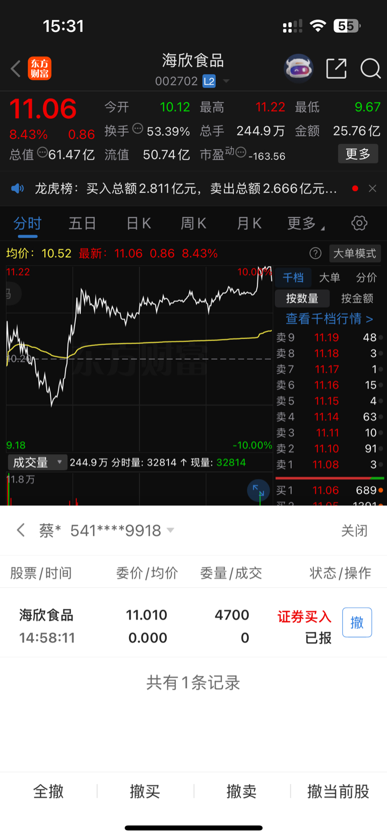 $海欣食品(SZ002702)$ 兄弟们我尽量帮你们压在11.01这个价位了,祝你们好运