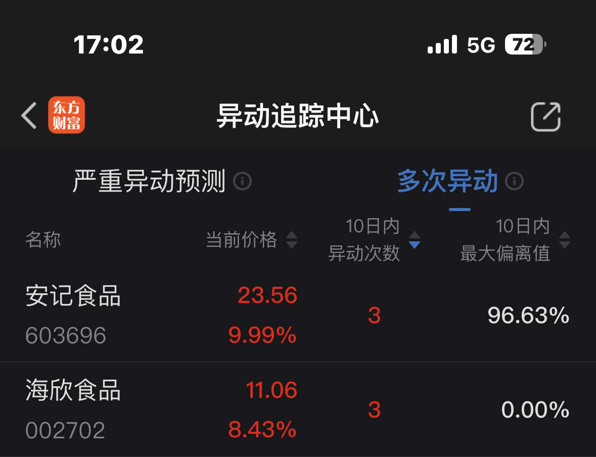$海欣食品(SZ002702)$ 可能主力是想今天先把海欣送进去,看看上头会是什么意思,后排这么多都快顶到异动了,如果明日的反馈好的话,就接着奏乐接着舞,如果海欣真的倒了,就可以找补涨龙了。海欣还不会停牌,异动次数还达不到标准呢,也不用慌,主力比你我想的多,一切看市场。市场需要海欣,他就一定能起来。兄弟们点点关注点点赞。