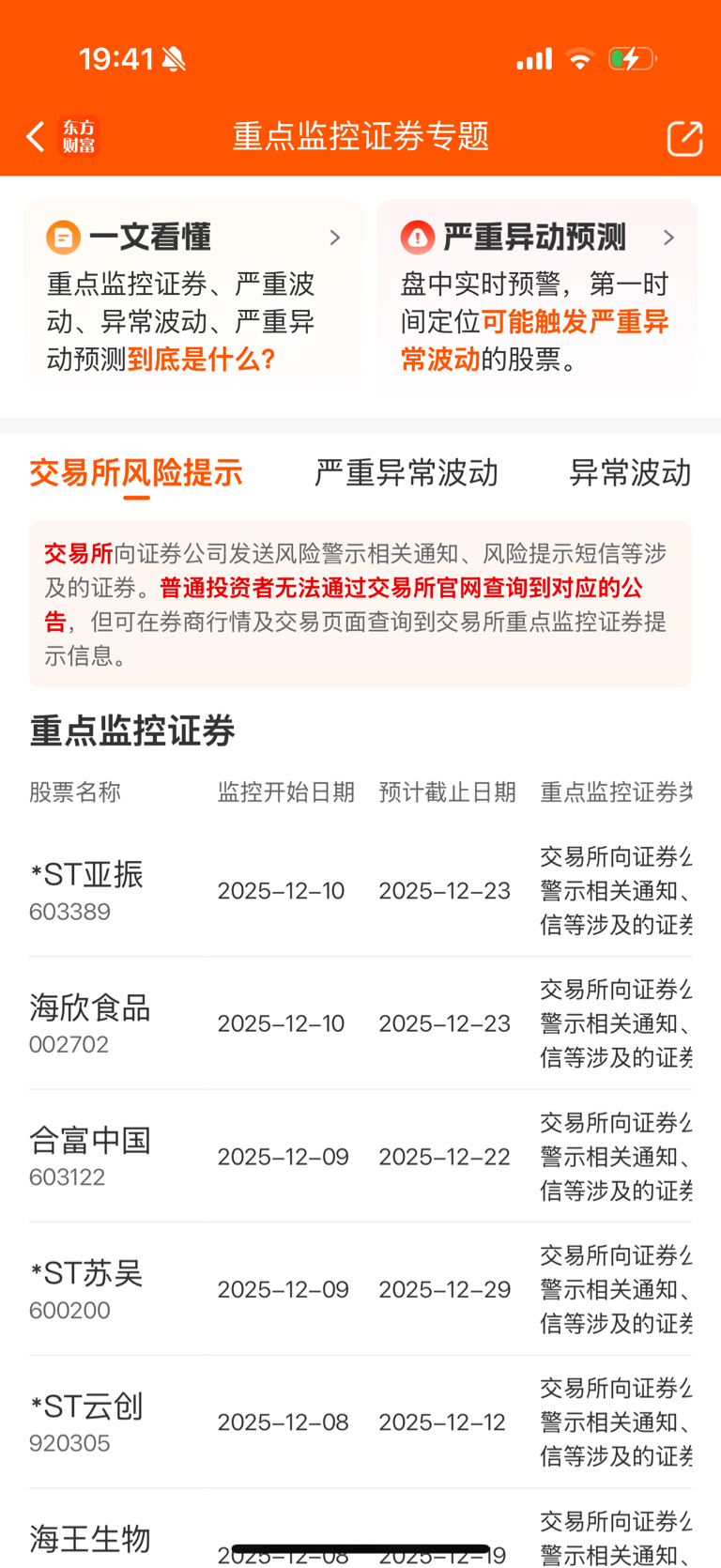 $海欣食品(SZ002702)$ 也进重点监控了,10天,跟平潭、合富一样