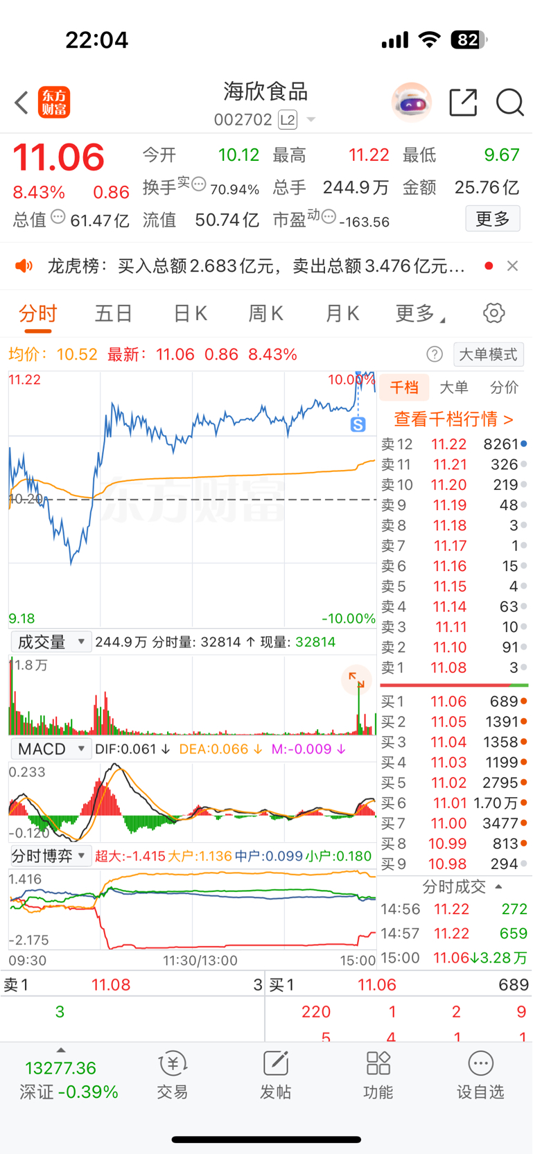$海欣食品(SZ002702)$ 今天挂涨停板出了三分之一,慢慢出清避免过山车闷杀难受