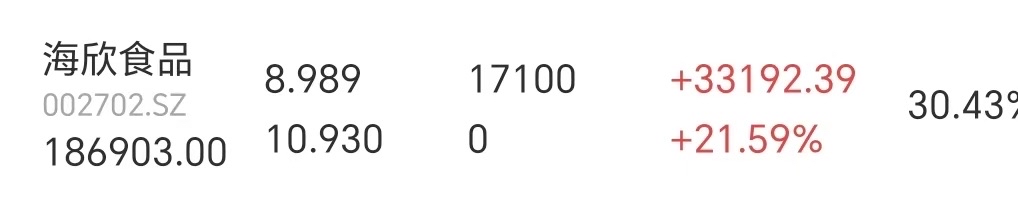 $海欣食品(SZ002702)$ 减了一半的仓位,还剩下170手,明天再买入600万的,今天资金从实达集团出来了一部分