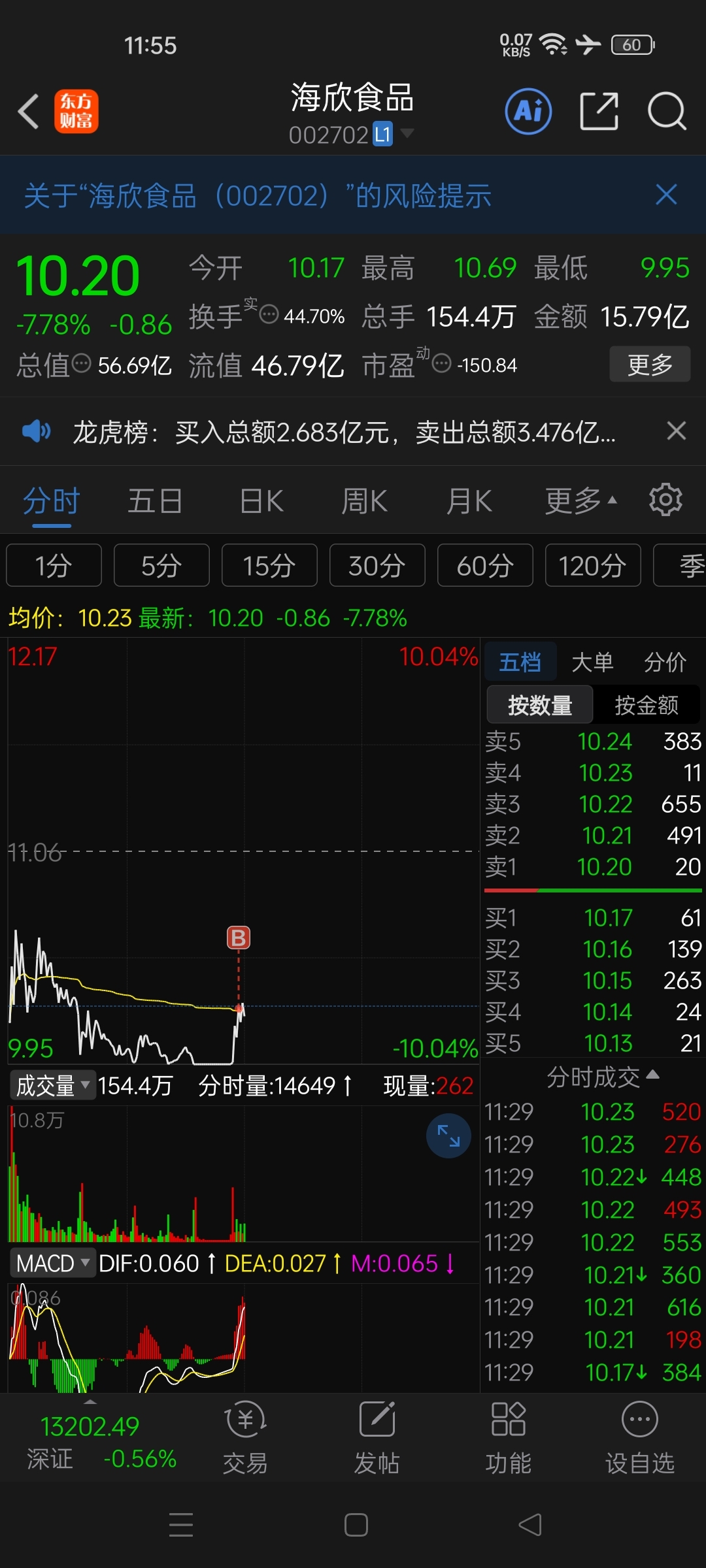 $海欣食品(SZ002702)$ 上车,我就赌你不会跌停