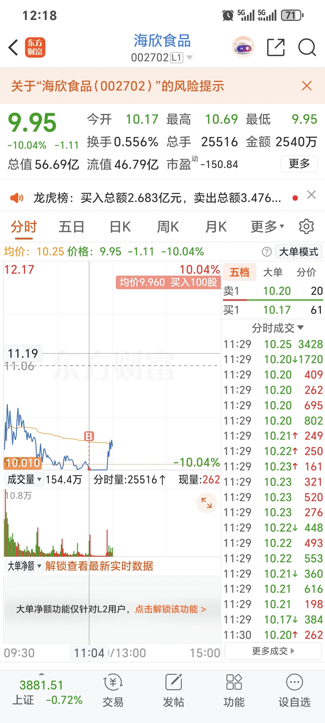 $海欣食品(SZ002702)$ 明天会不会被埋