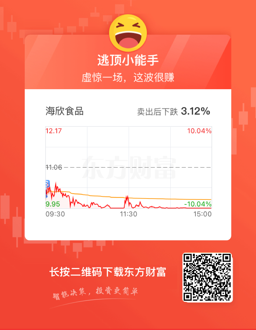 $海欣食品(SZ002702)$ 昨天被套一儿