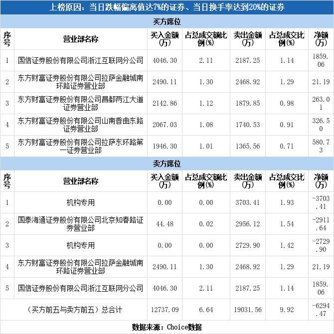 多主力现身龙虎榜,海欣食品跌停(12-10)