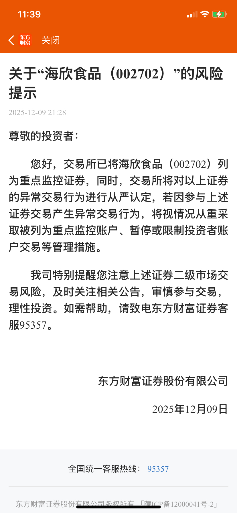 $海欣食品(SZ002702)$ 我说今天怎么这么老实,买了一点还提醒了!
