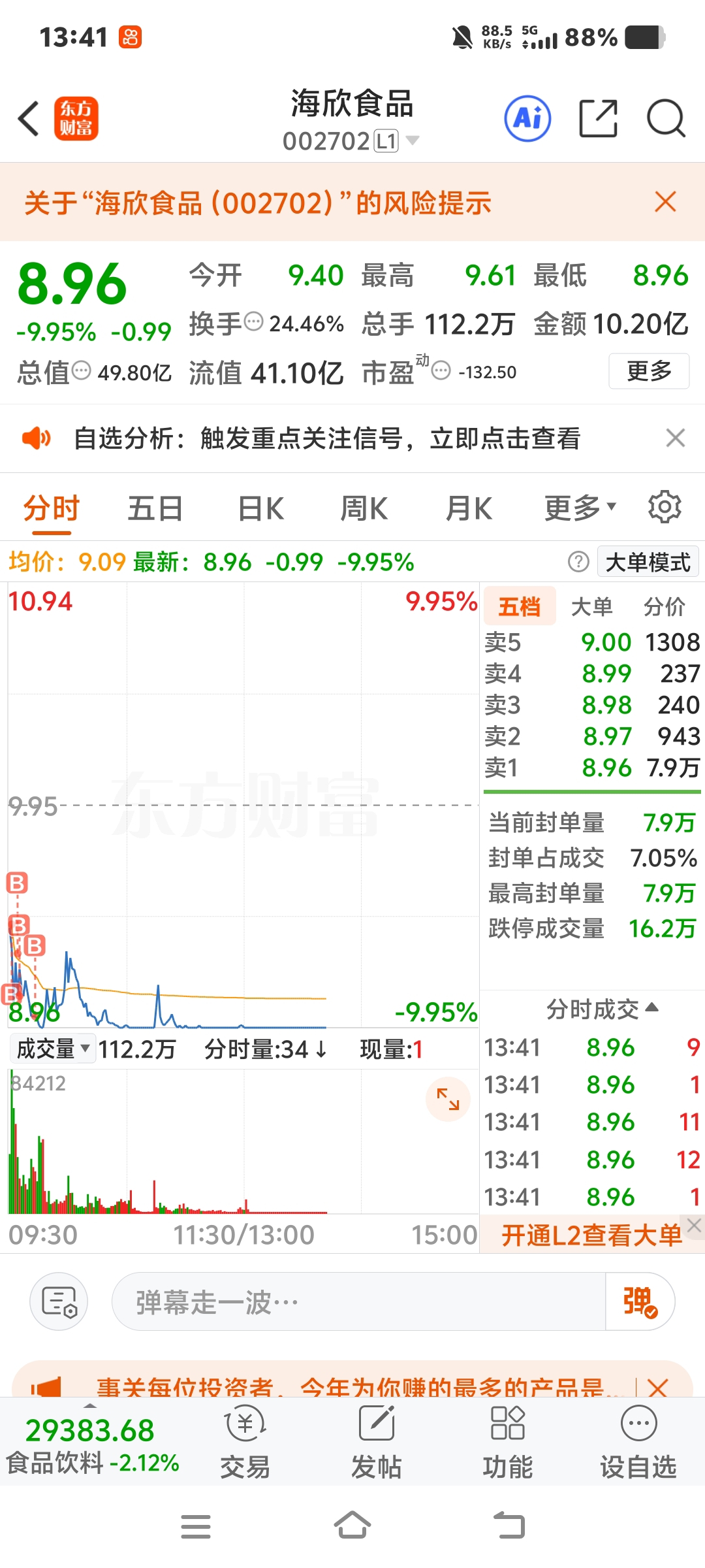 $海欣食品(SZ002702)$ 后悔了