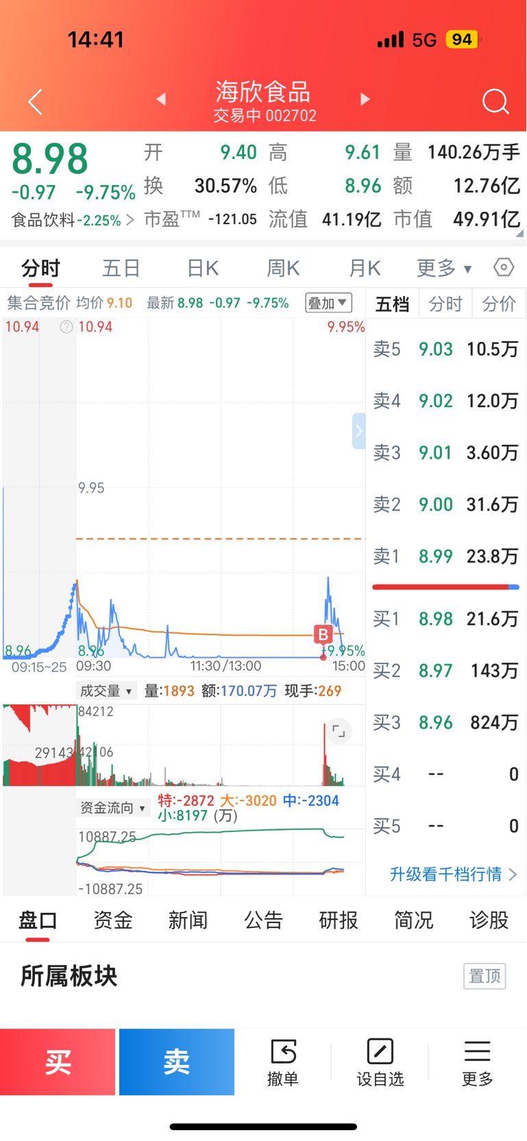 $海欣食品(SZ002702)$ 兄弟们我尽力了