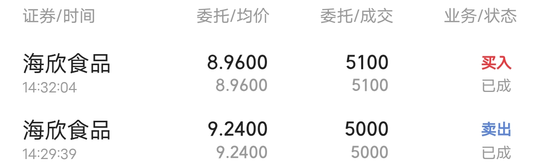 $海欣食品(SZ002702)$ T了2个点,不知道明天集合竞价怎样?先干着再说