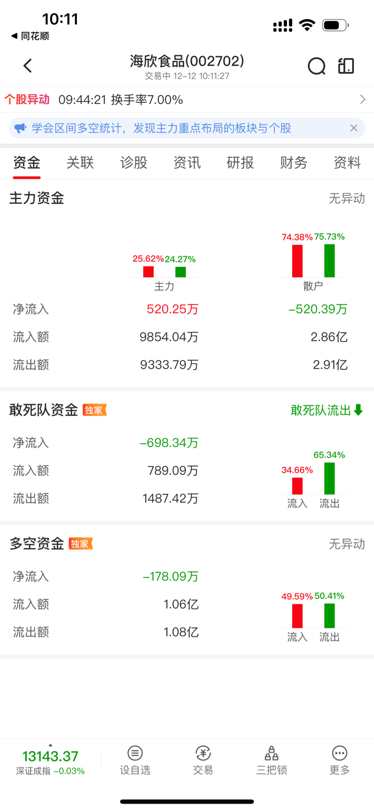 $海欣食品(SZ002702)$ 今天好像没怎么跑了