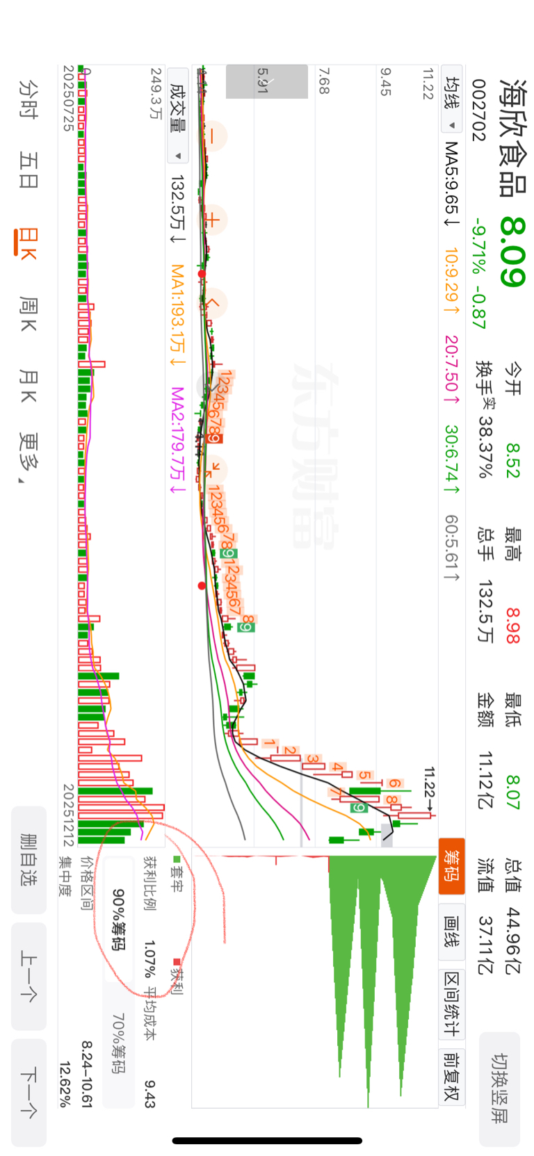 $海欣食品(SZ002702)$ 这是什么意思,获利盘跑完了,全是套牢盘