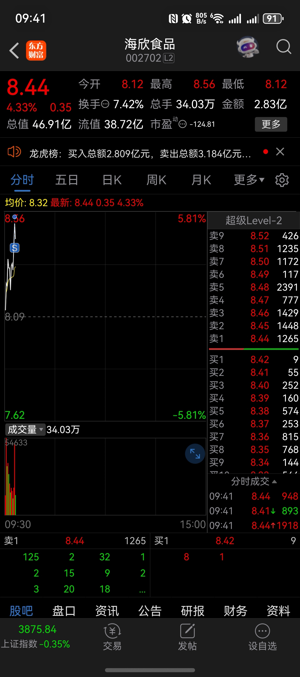 $海欣食品(SZ002702)$ 谢谢主力解套!
