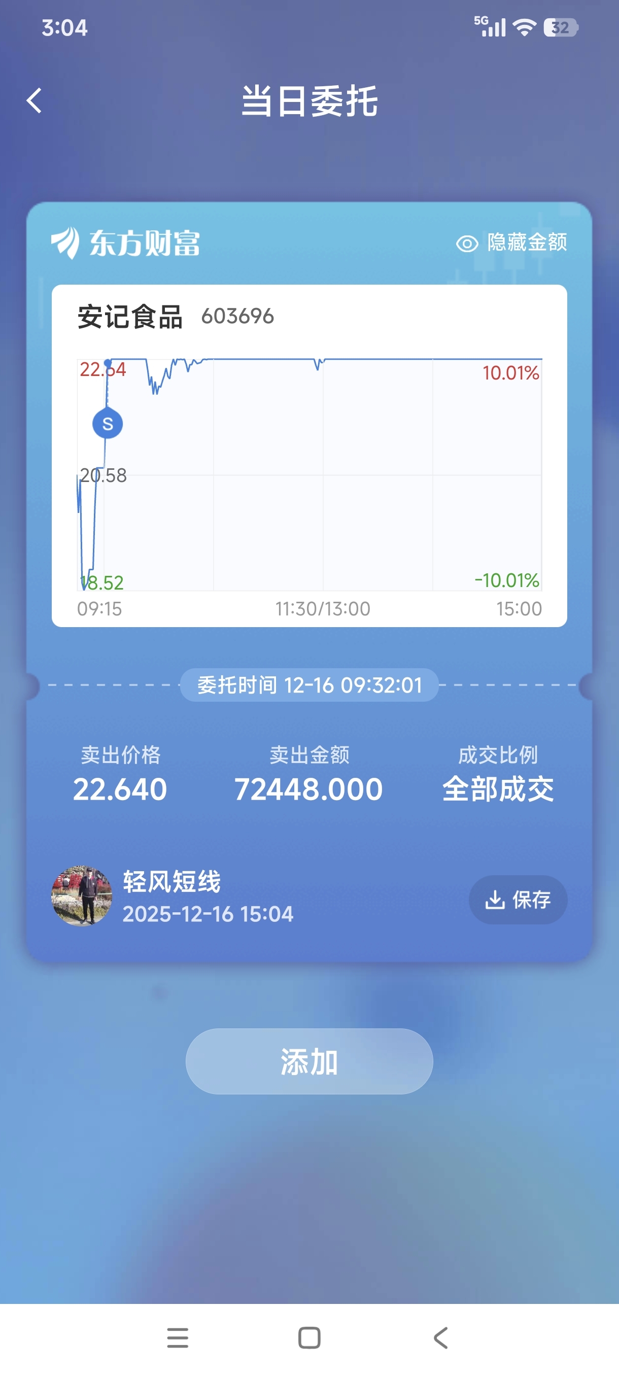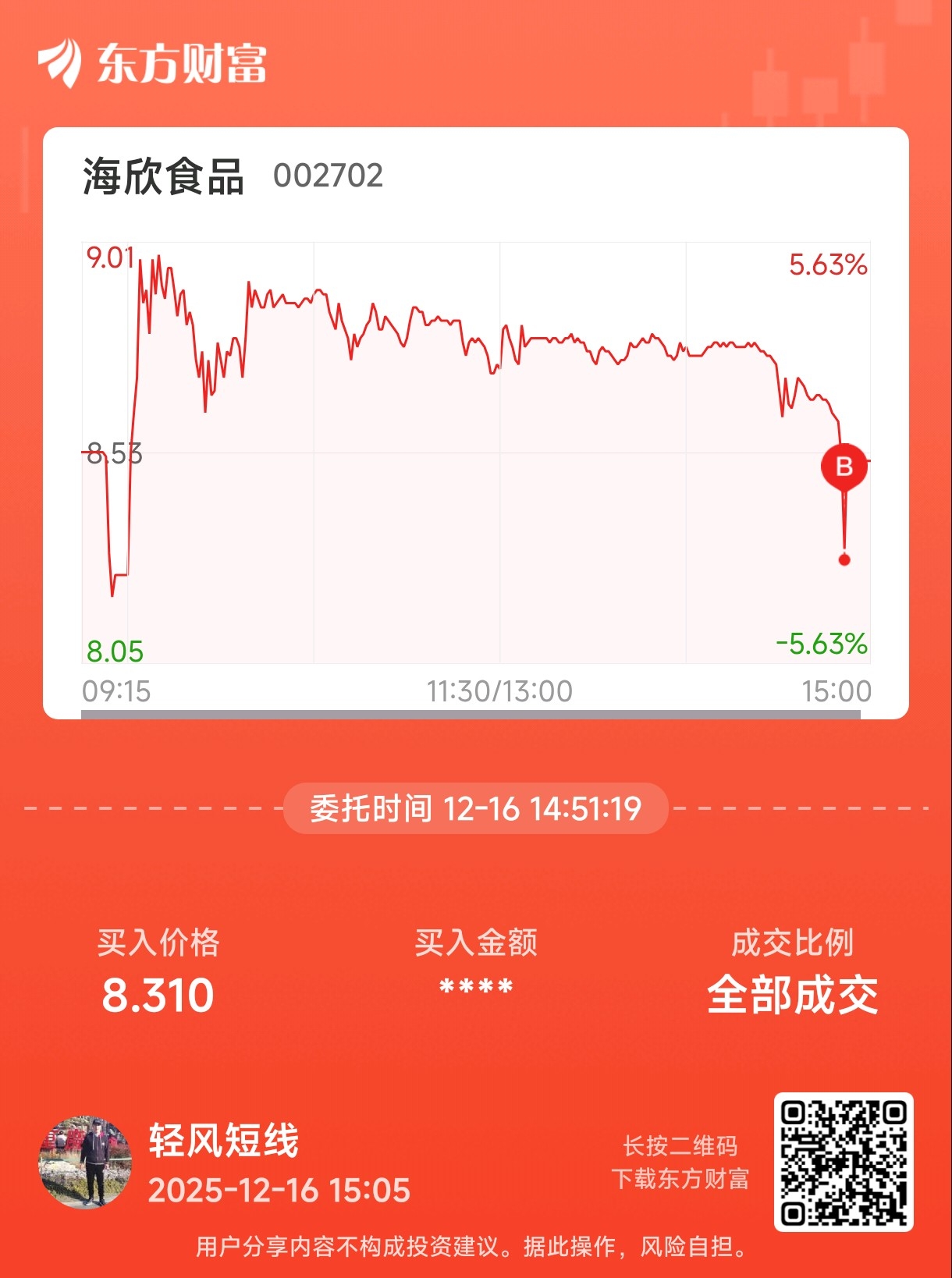 早盘涨停卖出安记,尾盘8.27买入海欣