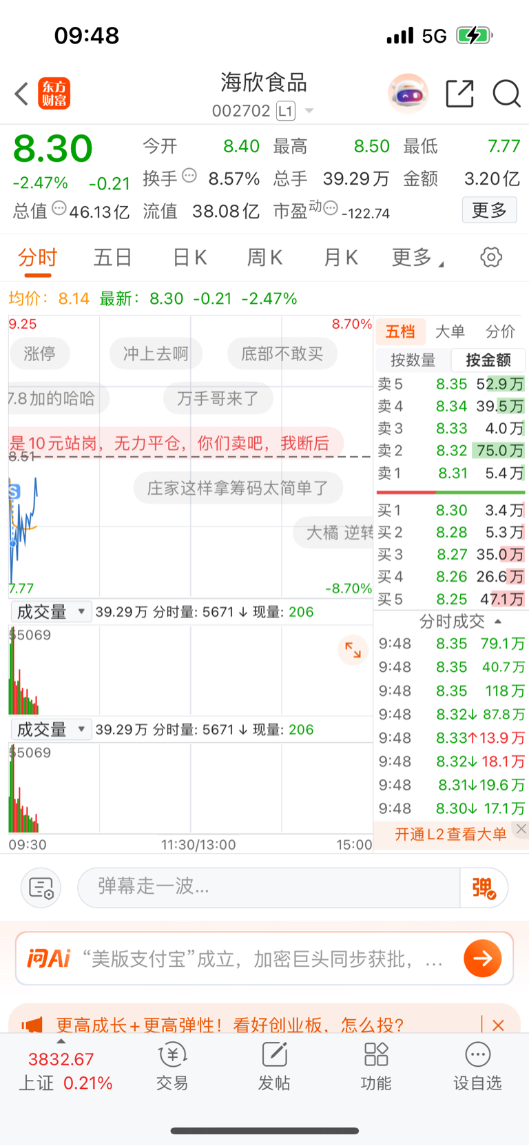 $海欣食品(SZ002702)$ 等我割了,你就拉,哦