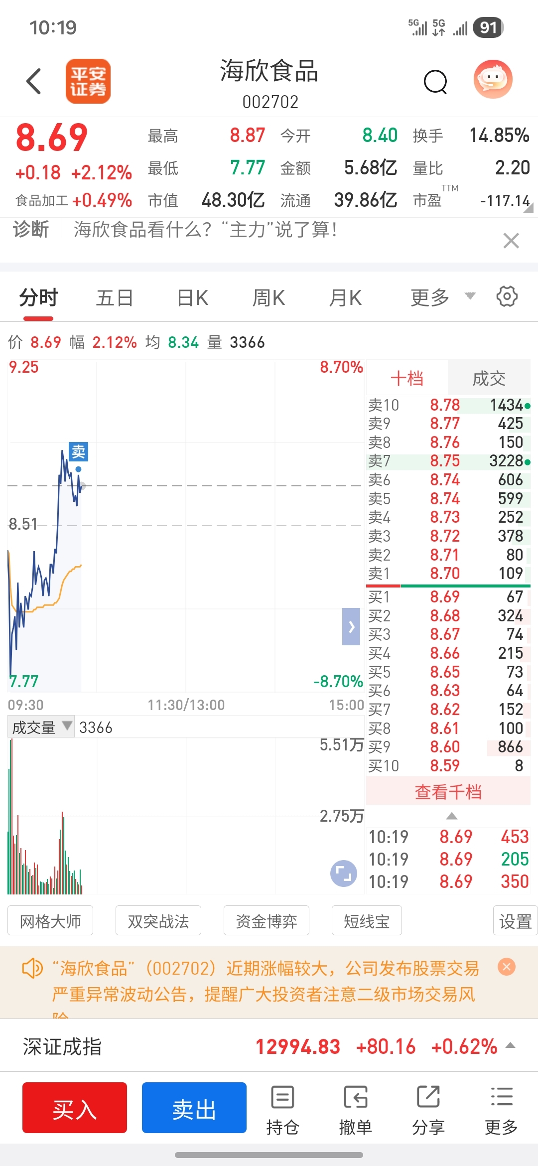 $海欣食品(SZ002702)$ 我卖了,主力可以涨停了吧
