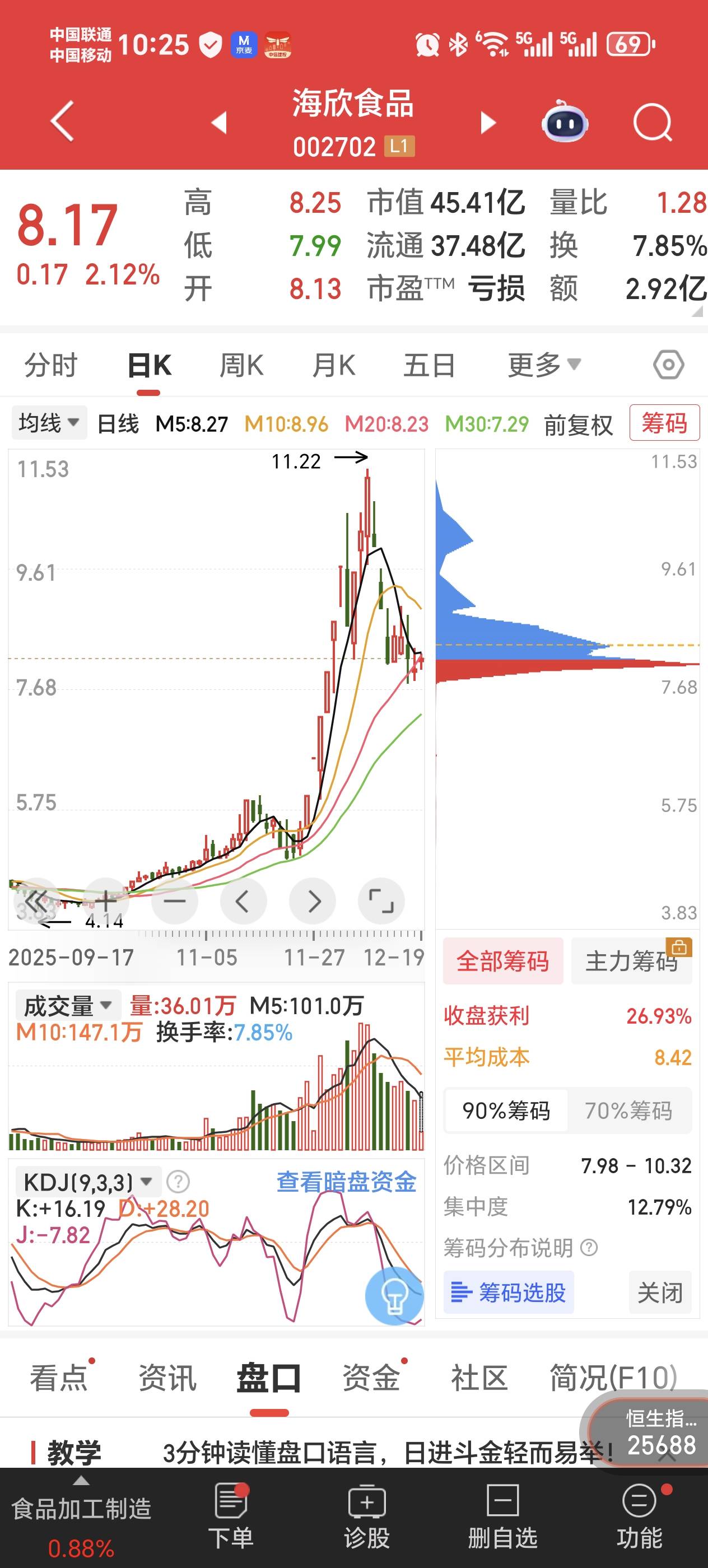 老铁们,上方套牢盘太多,不可能涨太多,除非主力去啦。每天的剧本都是冲高回落,回落
