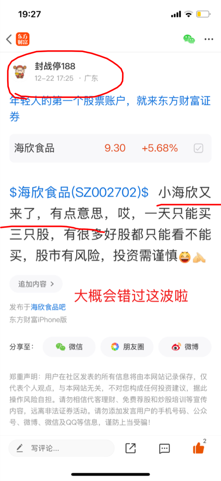 温馨提示: 1.根据《证券法》规定,禁止编造、传播虚假信息或者误导性信息,扰乱证券市场;2.用户在本社区发表的所有资料、言论等仅代表个人观点,与本网站立场无关,不对您构成任何投资建议。用户应基于自己的独立判断,自行决定证券投资并承担相应风险。《东方财富社区管理规定》