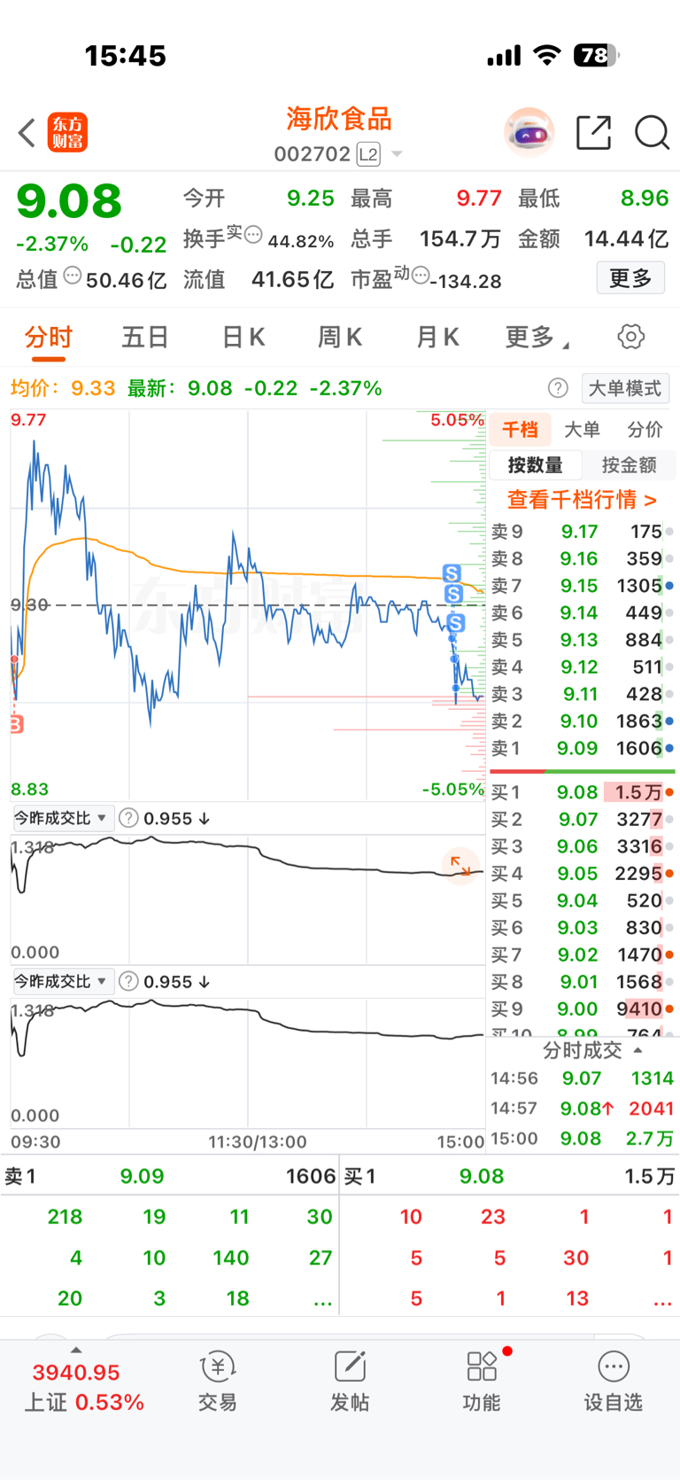 $海欣食品(SZ002702)$ 格局了一天,等来的却是疏远!欣,是不爱了吗?欣分手可以把今天亏的五千还我吗?