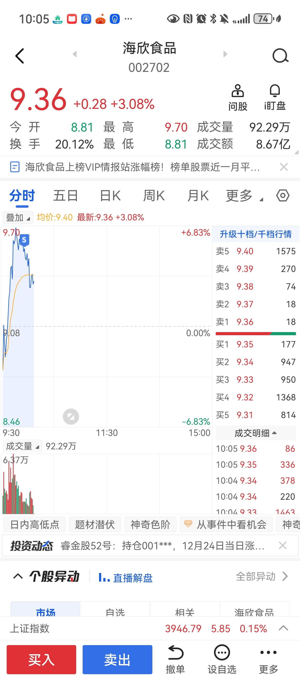 $海欣食品(SZ002702)$ 溜了溜了,又要玩昨天冲高回落那一套了
