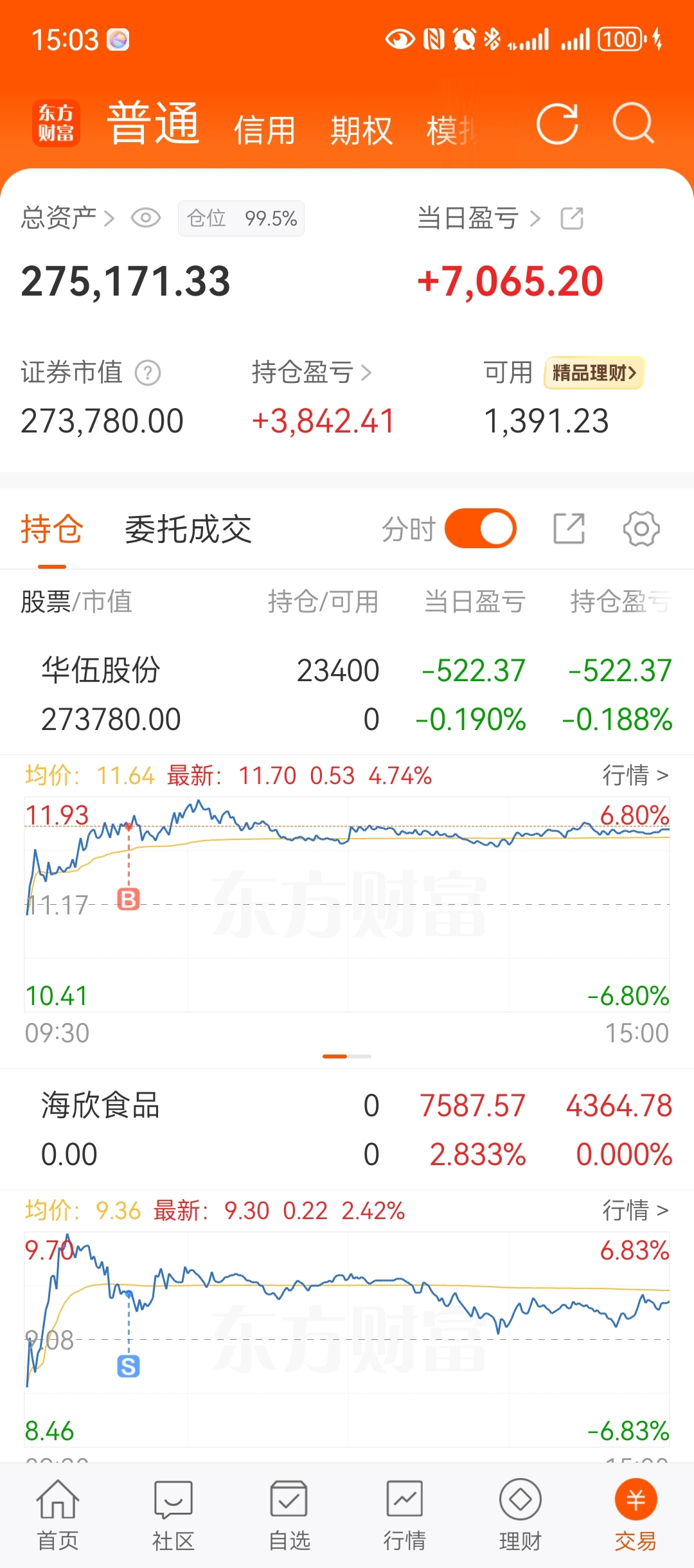 海欣早盘看着安记食品,东百集团都很给力,就拿着海欣,红盘想着冲到9.8块跑路,结