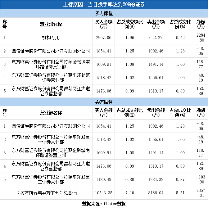 机构现身龙虎榜,海欣食品换手率达34.57%(12-25)