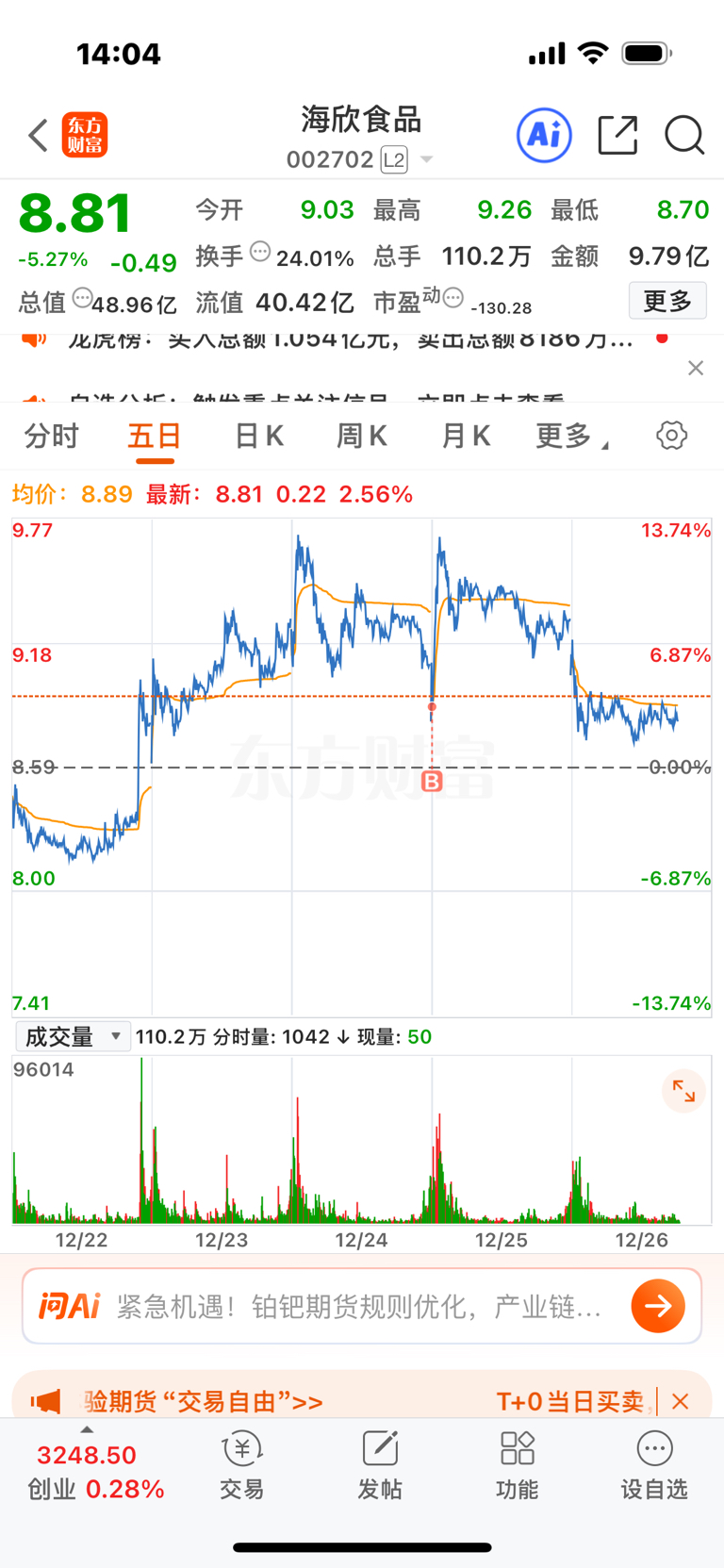 $海欣食品(SZ002702)$ 海欣主力你说不是搞我我不信