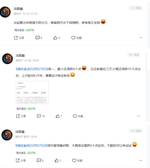 $海欣食品(SZ002702)$ 现在再看看我预判下跌的点数是不是全对?还有人骂我吗