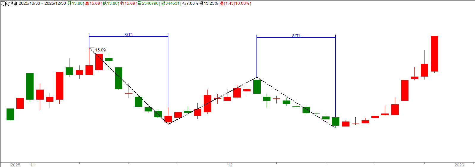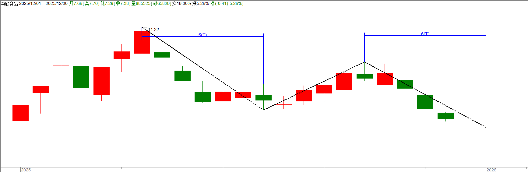 $海欣食品(SZ002702)$ 耐住性子至少要等到周期对称再关注,从11.22第一波回调7天,然后反弹6天,第二波回调如果也是7天的话就是下周一,空间最好能到7.05至7.13区域,所以下周一再关注是否出买点。就像万向钱潮一样,第一波回调9天,第二波也是9天,周期对称出买点!