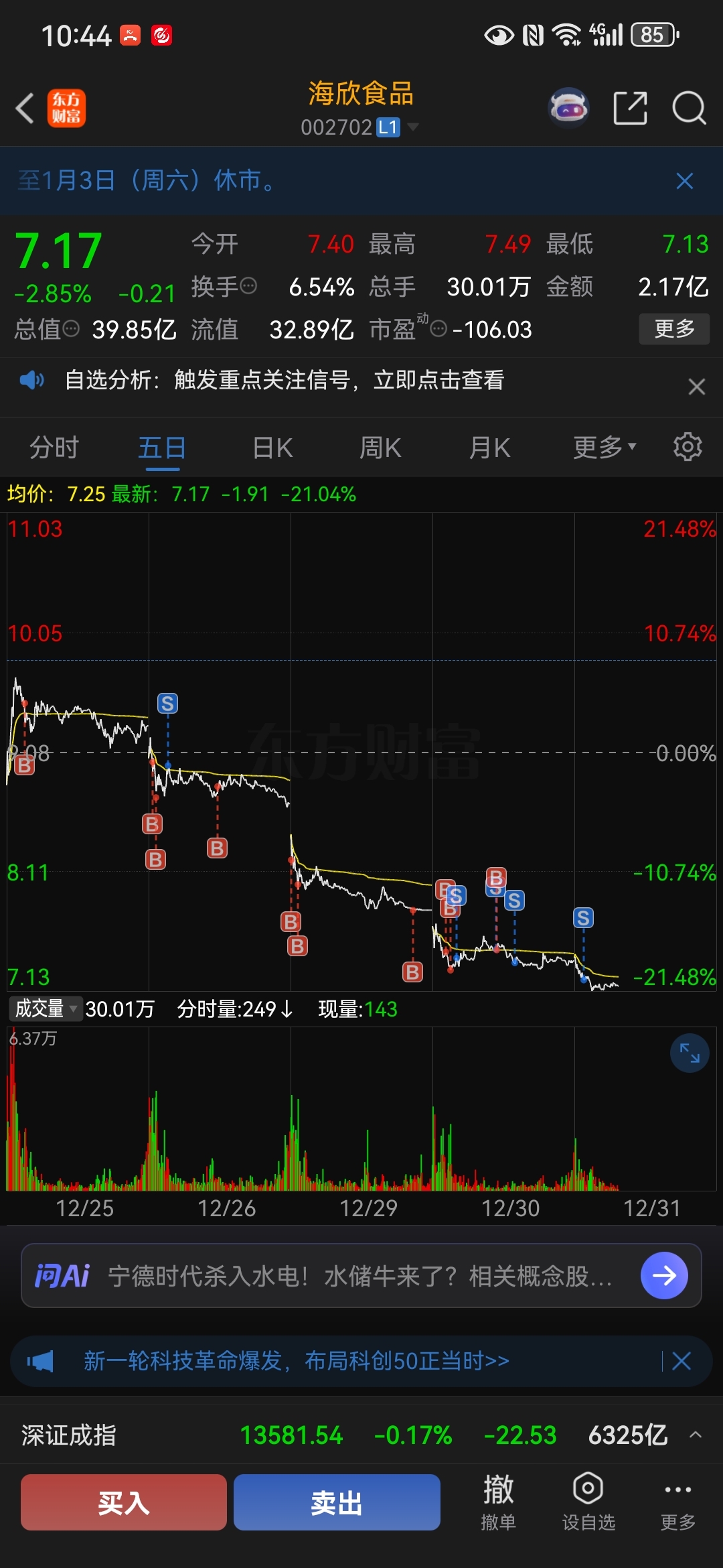 $海欣食品(SZ002702)$ 五天时间啊,亏麻了