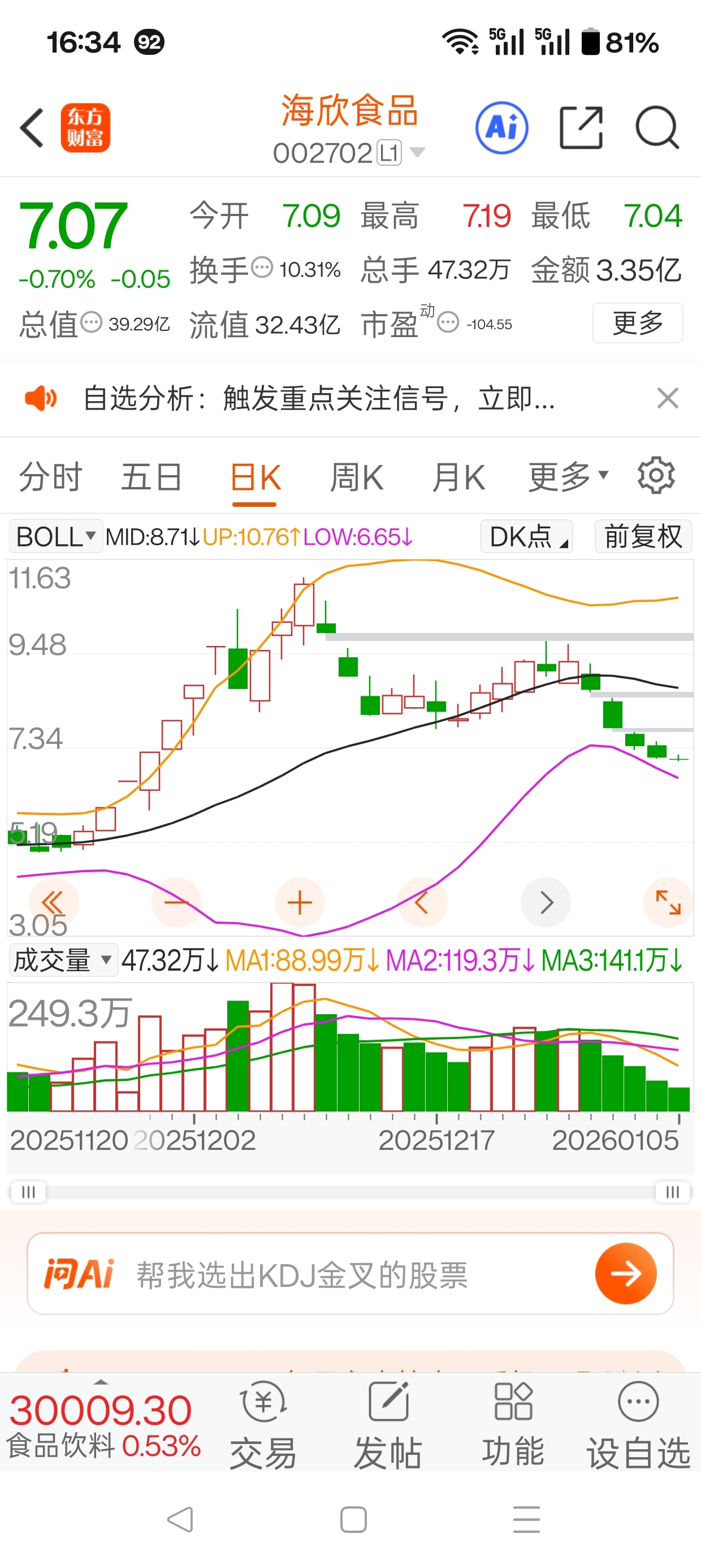 $海欣食品(SZ002702)$ 下跌阴十字星,靠,这不是下跌抵抗型吗?暴跌在明天?
