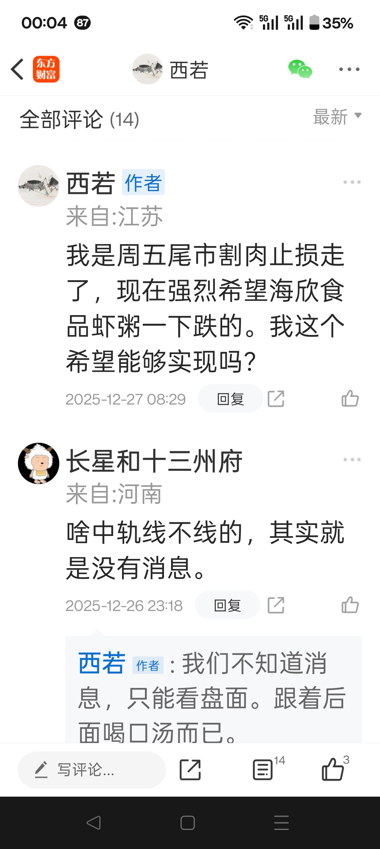 $海欣食品(SZ002702)$ 心想事成,说了暴跌,果然暴跌。为啥不卖出呢?奇了怪了