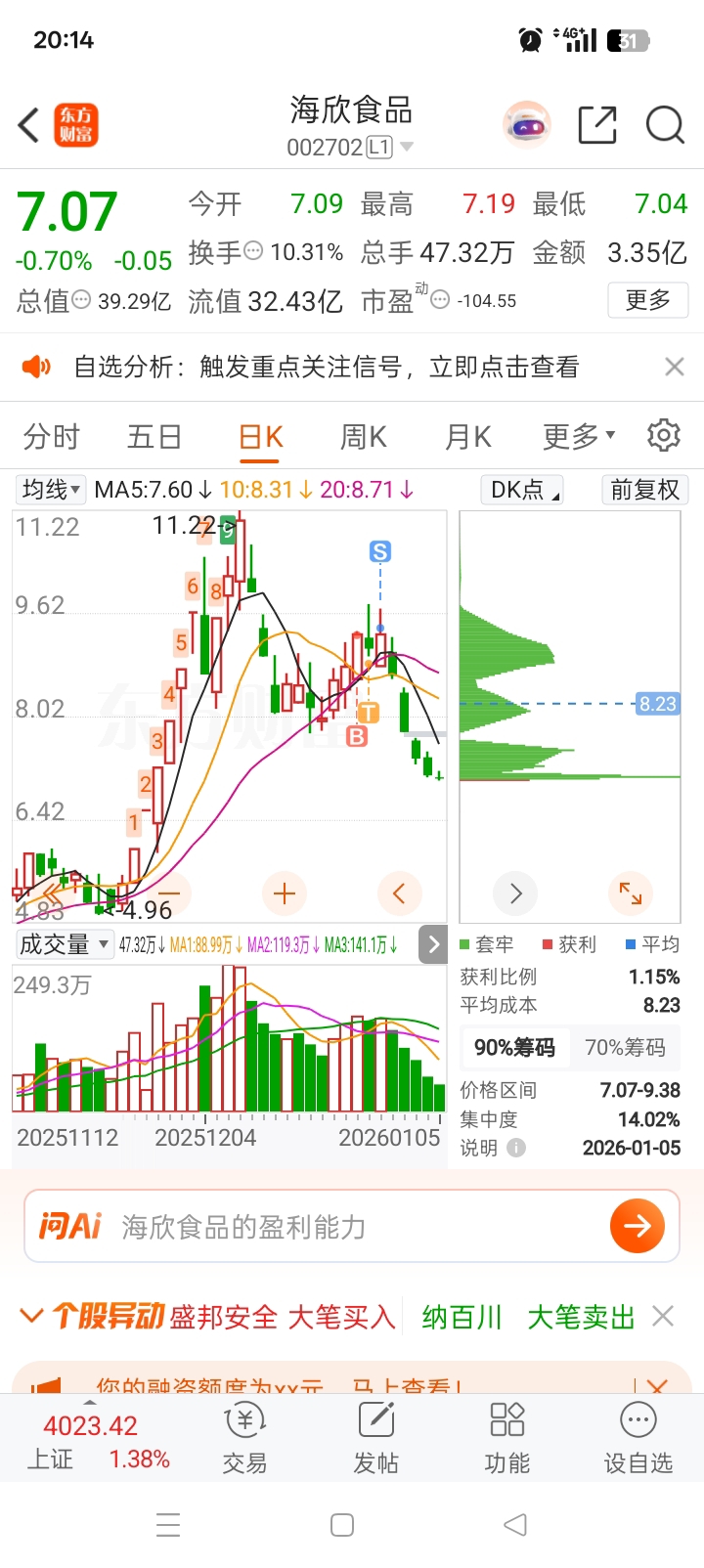 $海欣食品(SZ002702)$ 过段时间再来接你