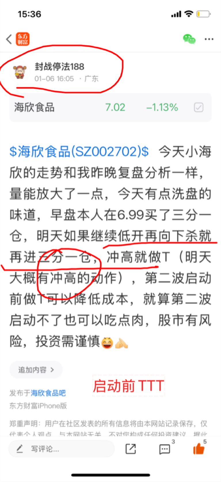 $海欣食品(SZ002702)$ 今天小海欣量能有点减少,正如昨晚复盘分析一样,午盘出现了一个冲高动作,本人成功做T(低吸冲高抛),成本再次降低2个点,仓位还是三分一仓,明天如果低开再向下杀,同样会做T,如高开冲高就看情况抛掉,如回落就买回,否则就再次等小海欣回调,股市有风险,投资需谨慎