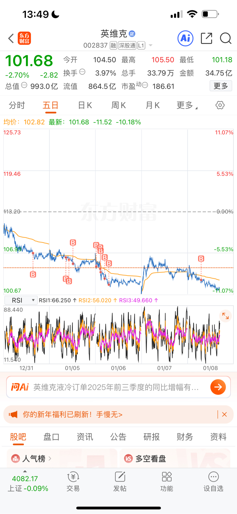 上周卖了去英维克!又是跌麻了,没红过!!!!!!!