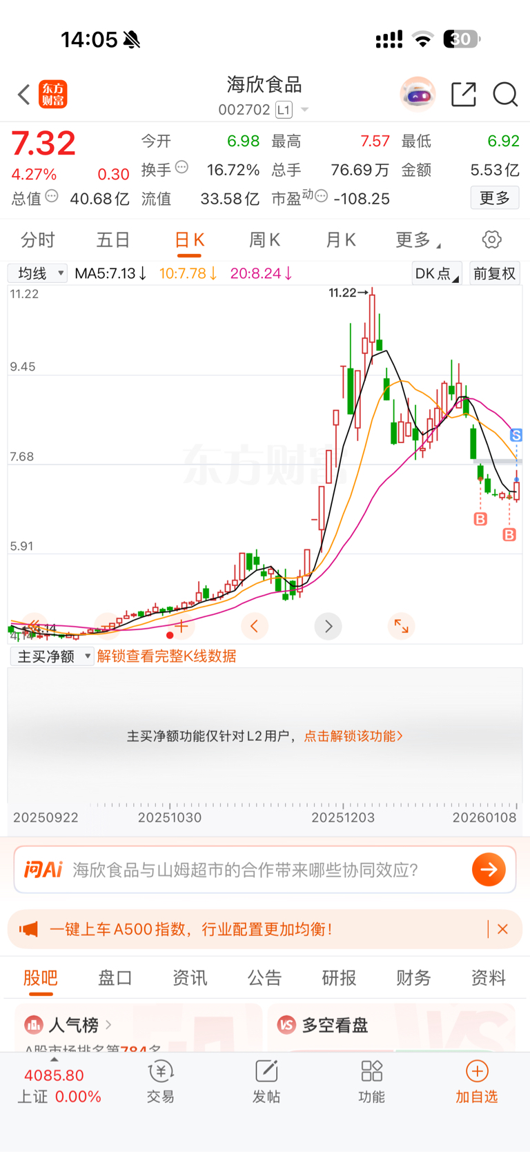 $海欣食品(SZ002702)$ 我先走了兄弟们