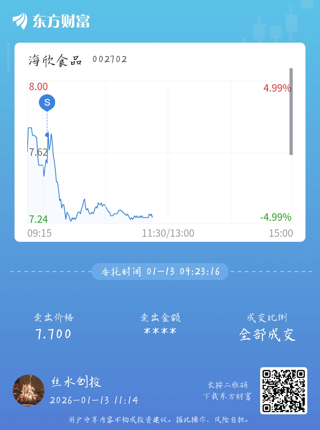 温馨提示: 1.根据《证券法》规定,禁止编造、传播虚假信息或者误导性信息,扰乱证券市场;2.用户在本社区发表的所有资料、言论等仅代表个人观点,与本网站立场无关,不对您构成任何投资建议。用户应基于自己的独立判断,自行决定证券投资并承担相应风险。《东方财富社区管理规定》