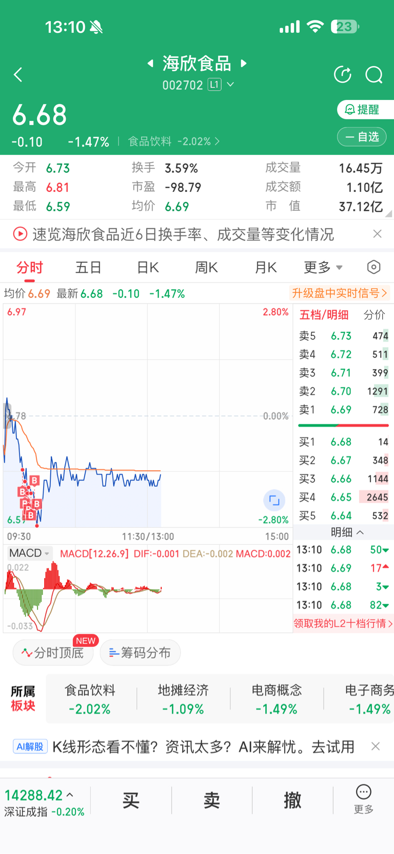 $海欣食品(SZ002702)$ 啥时候能起飞啊