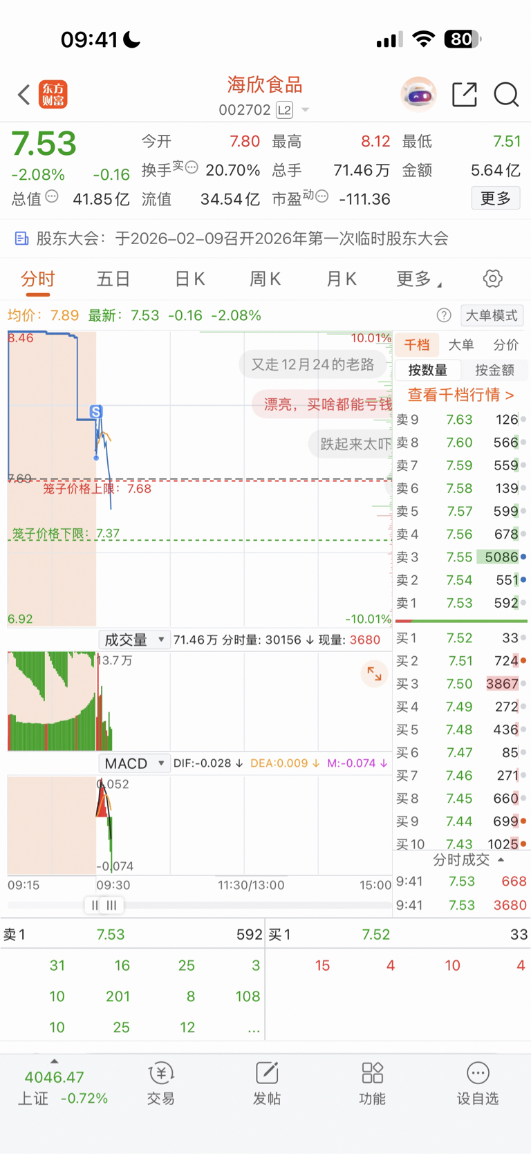 $海欣食品(SZ002702)$ 昨天说了今天应该缩量高开5%以上才对,这种一日游见过太多了