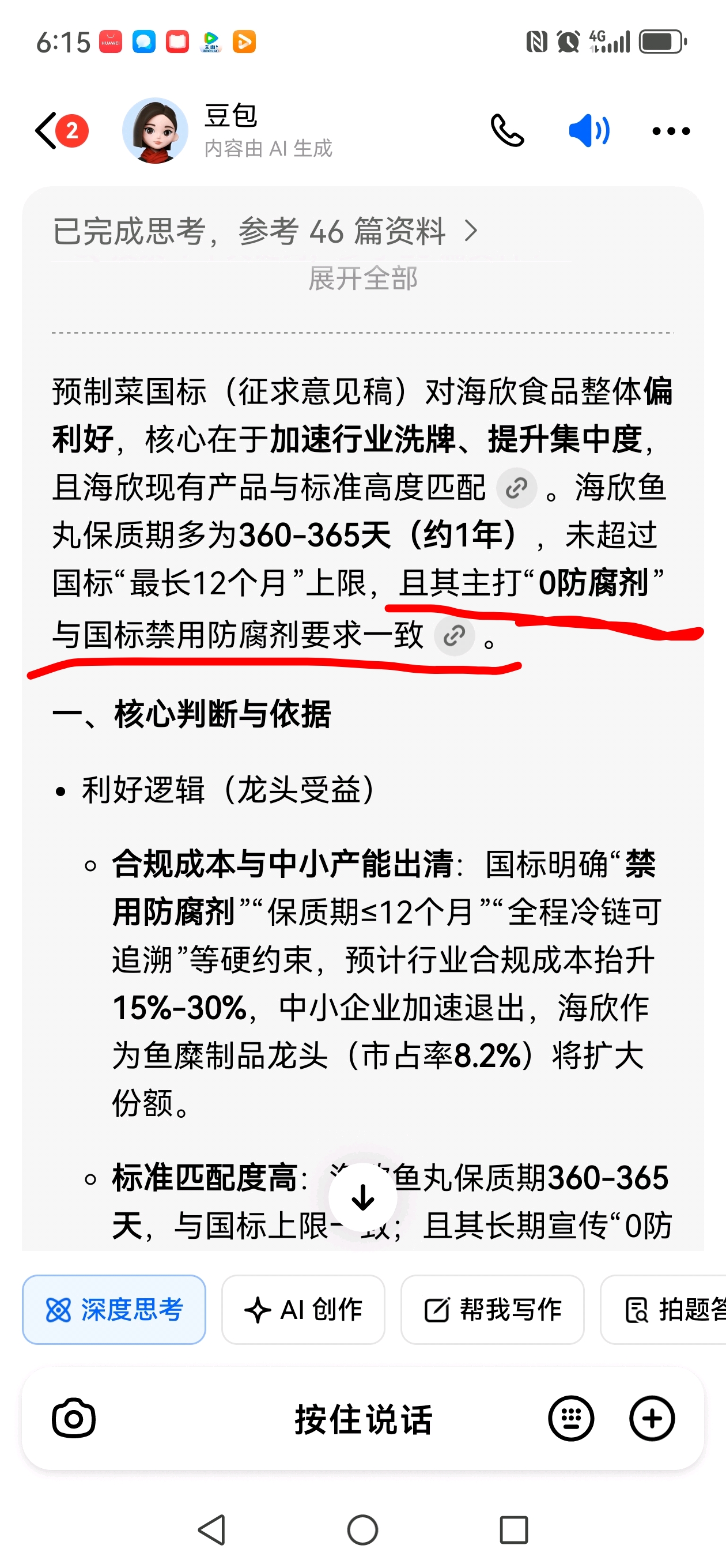 这个对海欣是利好啊,把那些小作坊鱼丸卡掉了,帮他垄断市场。这个市场可大了,全国很