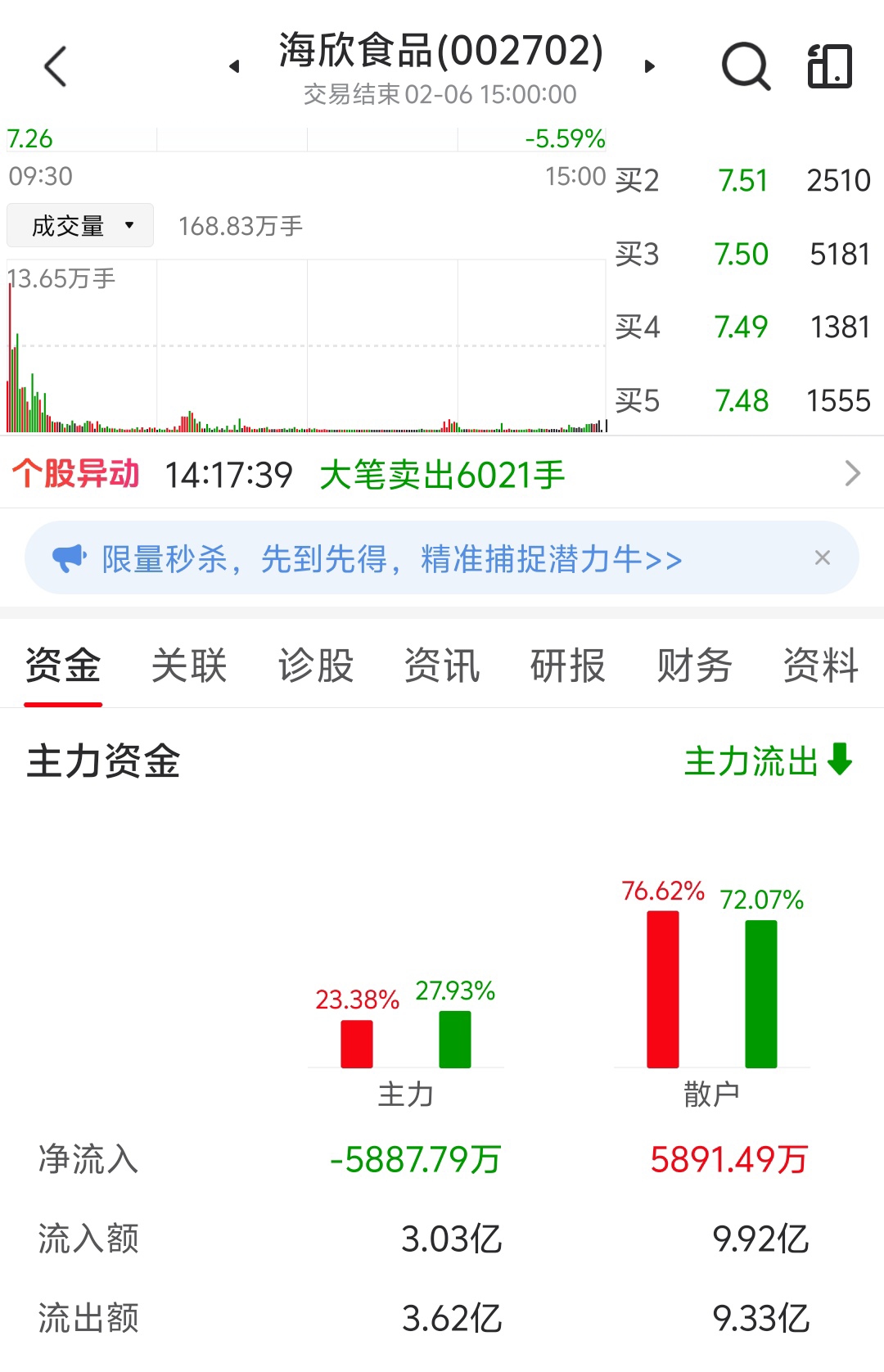$海欣食品(SZ002702)$ 看看主力出了多少货吧,散户出货有不少是主力拆单出货的,在看看多少散户在接主力出货的盘,还想着周一封板,真是异想天开,封地板差不多!周一至少要大跌。也有可能吃地板,没跑的,到时候拍大腿吧,30的换手都不跑,你们真行还吹涨