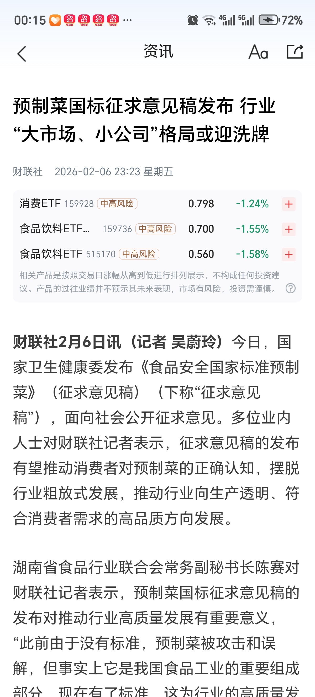既然拿住了就好好过周末,我也看新闻联播了,确实有提预制菜新标准出来了,这说明国家对这产业重视起来了,以后会越来越好,上新闻就应该是利好,又不是通报海欣违规,什么利空,都别争了,现在是上车看多,看长远的机会。