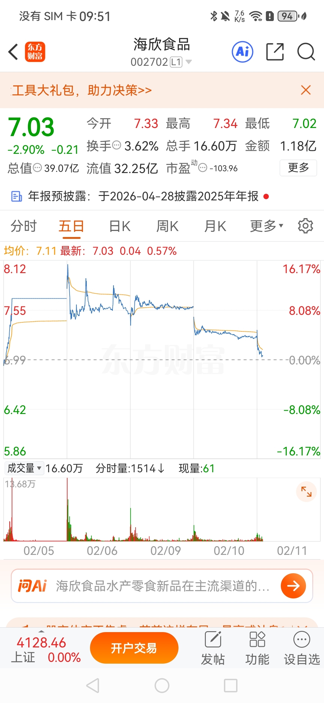 $海欣食品(SZ002702)$ 过年了,洗洗干净?