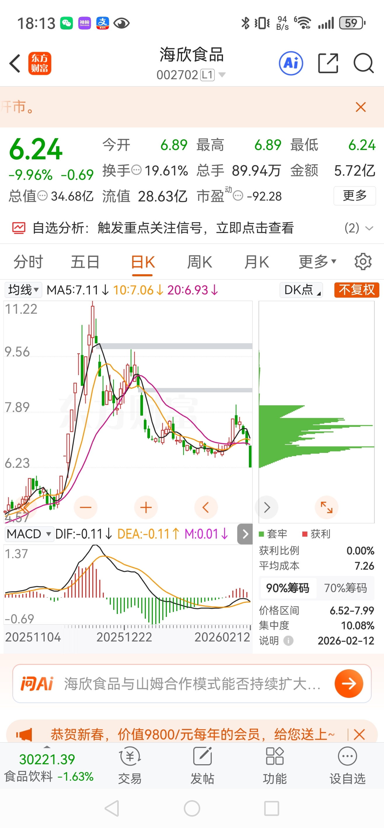 $海欣食品(SZ002702)$ 获利比例为0。怎么做到的